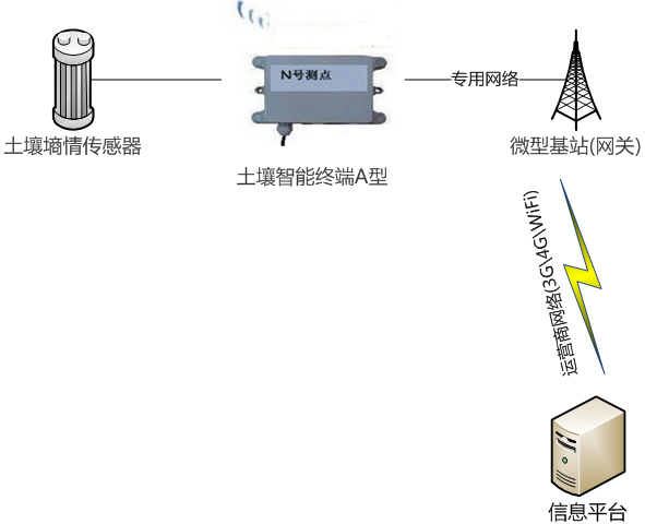 土壤墑情及環(huán)境在線監(jiān)測(cè)系統(tǒng),主要由智能監(jiān)測(cè)終端,數(shù)據(jù)傳輸網(wǎng)絡(luò),信息平臺(tái)組成。